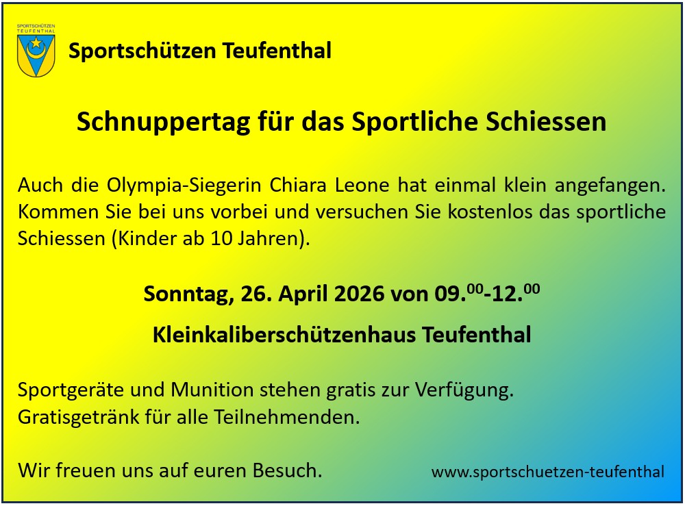 Die Sportschützen Teufenthal wurden 1923 gegründet. Der Verein dient der Förderung und Erhaltung des sportlichen Schiessens auf eine Distanz von 50 m. Wir sind bestrebt, nebst einer guten Kameradschaft, uns auch regional wie überregional an den verschiedenen Wettkämpfen zu messen und unsere Erfolge über die Jahre seit Bestehen des Vereins machen uns zu einem der bekanntesten Sportschützenvereine in der ganzen Schweiz.